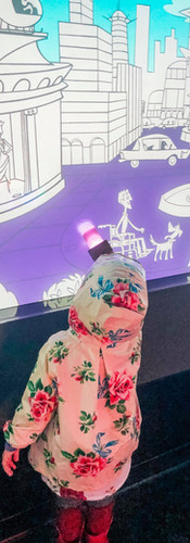 Next up is our absolute favorite thing to do at Epcot! It's called "Innovations". And it's located to the left as you head towards Mission Space! As you enter there are interactive stations to your left, but we head straight to Colortopia! Where we get to learn about the world around us in color. Including painting with a magic paintbrush! I can't stress this enough, you don't want to miss this attraction!